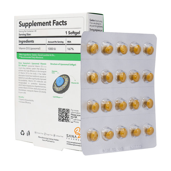 سافت ژل ویتامین D3 1000 واحد ساناویوا 40 عدد
