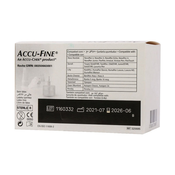 Accu Chek Accu Fine Insulin Pen Needle 4 mm 100 Pcs