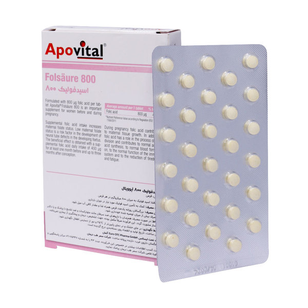قرص اسید فولیک ۸۰۰ آپوویتال 30 عدد