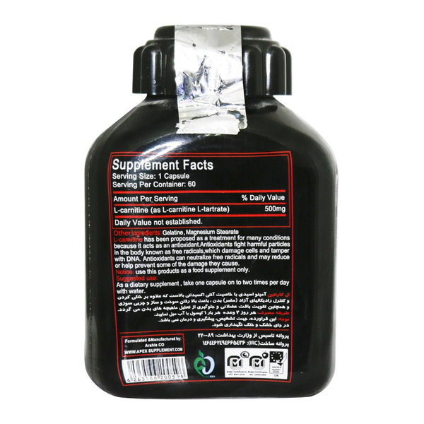 قرص ال کارنیتین 500 میلی گرم اپکس 60 عددی