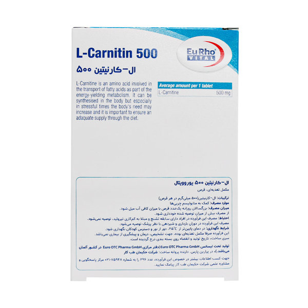 قرص ال کارنیتین 500 میلی گرم یوروویتال 60 عدد