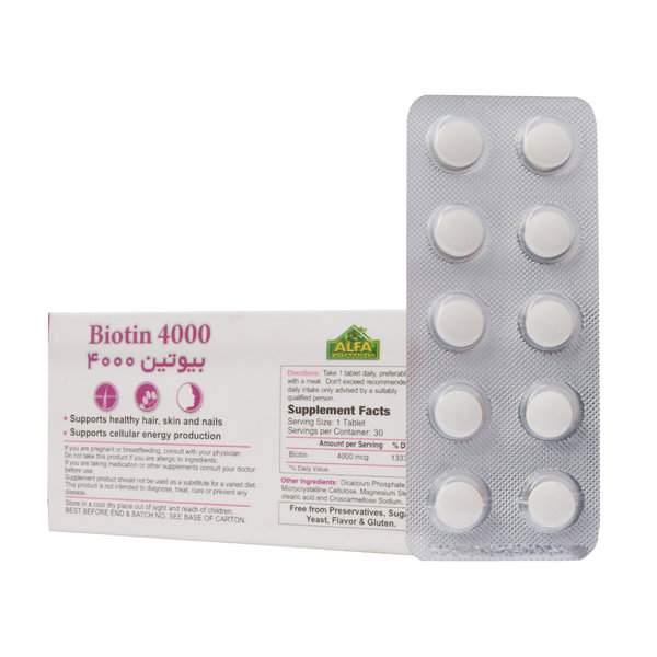 قرص بیوتین 4000 میکروگرم آلفا ویتامینز 30 عدد