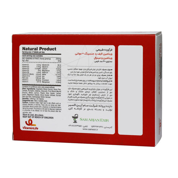 قرص رد جینسینگ پاور مولتی ویتامین و مینرال ویتامین لایف ۳۰ عدد