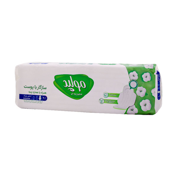 نوار بهداشتی بالدار ضخیم پنبه ای مولپد سایز خیلی بزرگ 9 عدد