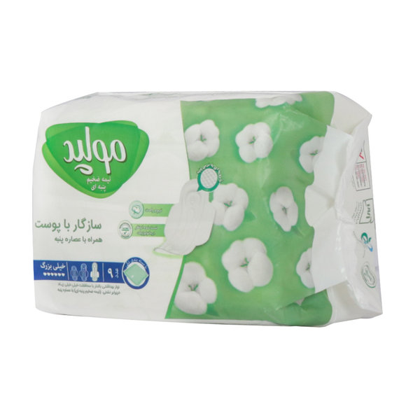 نوار بهداشتی بالدار نیمه ضخیم پنبه ای مولپد سایز خیلی بزرگ 9 عدد