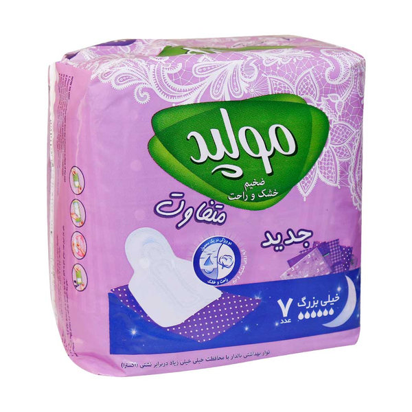 نوار بهداشتی مسافرتی ضخیم مولپد سایز خیلی بزرگ ویژه شب 7 عدد