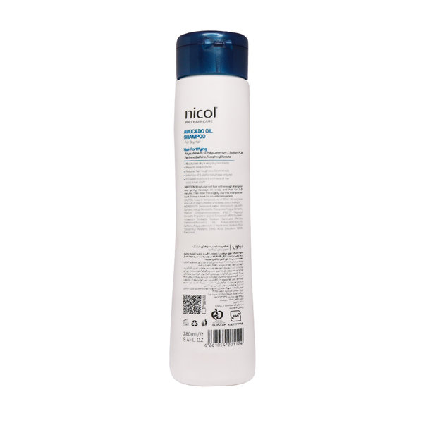 شامپو مناسب موهای خشک نیکول حاوی روغن آووکادو 280 میلی لیتر