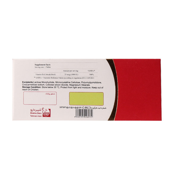 قرص خط دار ویتامین D3 1000 واحد شهر دارو 100 عدد