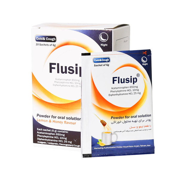 Flusip Cold & Cough Night Powder With lemon & honey 10 Sachets