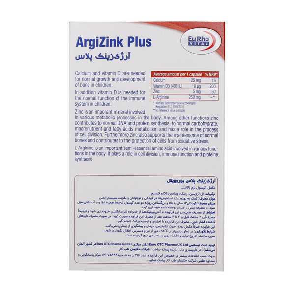 کپسول آرژی زینک پلاس یوروویتال 30 عدد