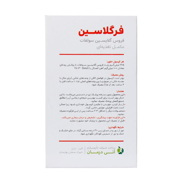 کپسول فرگلاسین فروس گلیسین سولفات آنی درمان 30 عدد